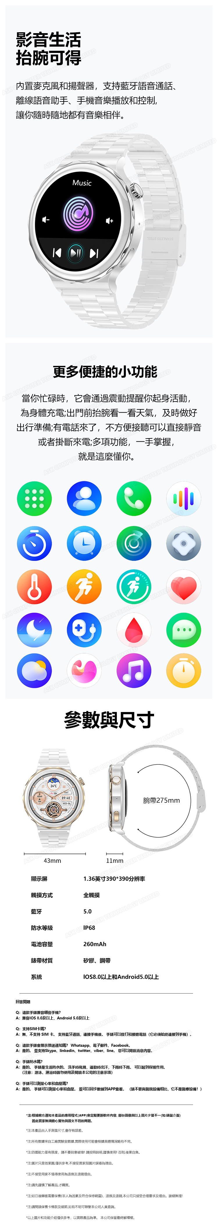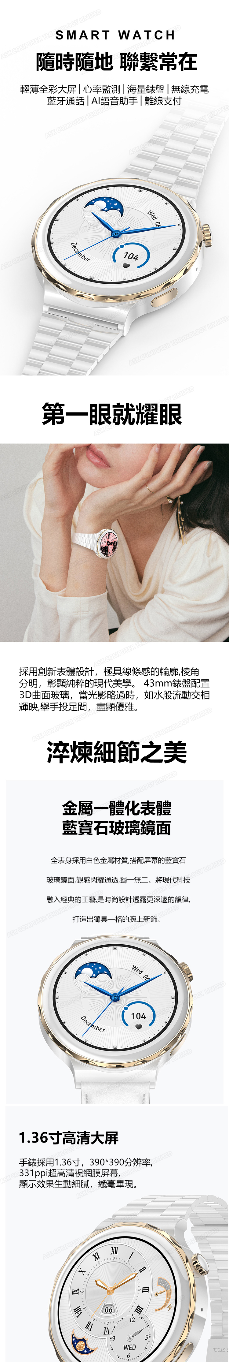 日本TSK 1.36寸AMOLED視網屏無線充電 AI語音助手 藍牙通話運動智能手錶 (送鋼帶)