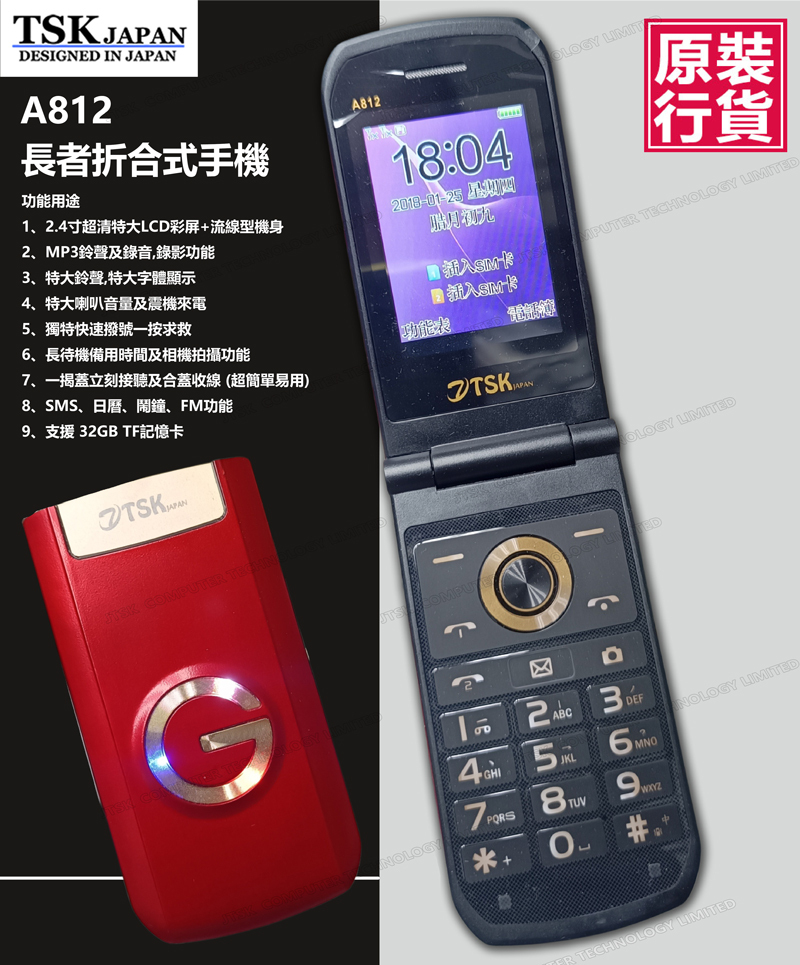 日本TSK A812 長者平安折合式手機 (送CSL $48電話卡)