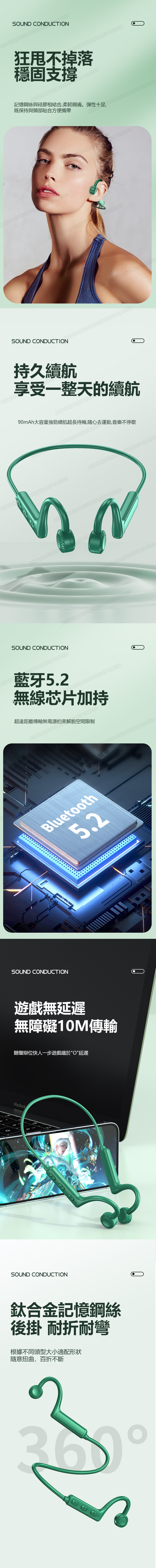 日本TSK 氣傳導運動藍牙耳機(綠色) P3694