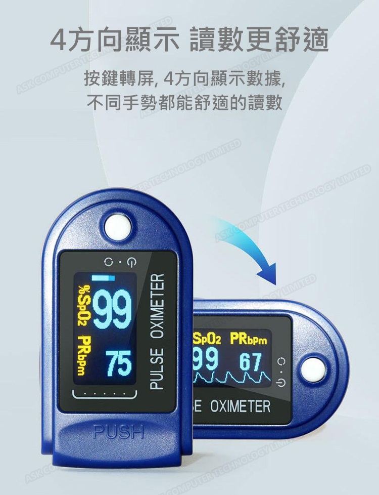 ■顯示格式: LCD顯示:血氧飽和度顯示:70 - 99,四幅變向,8種模式顯示;(分別為向上下左右大小字體的變換)