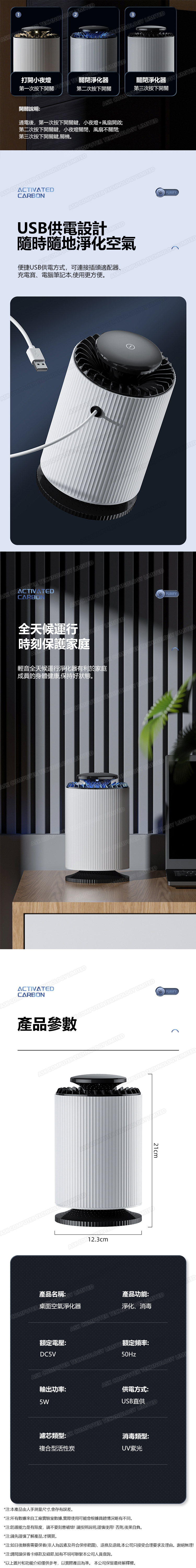 日本TSK 家用二合一USB款小夜燈空氣淨化器 除甲醛 PM2.5濾網 除煙空氣淨化機