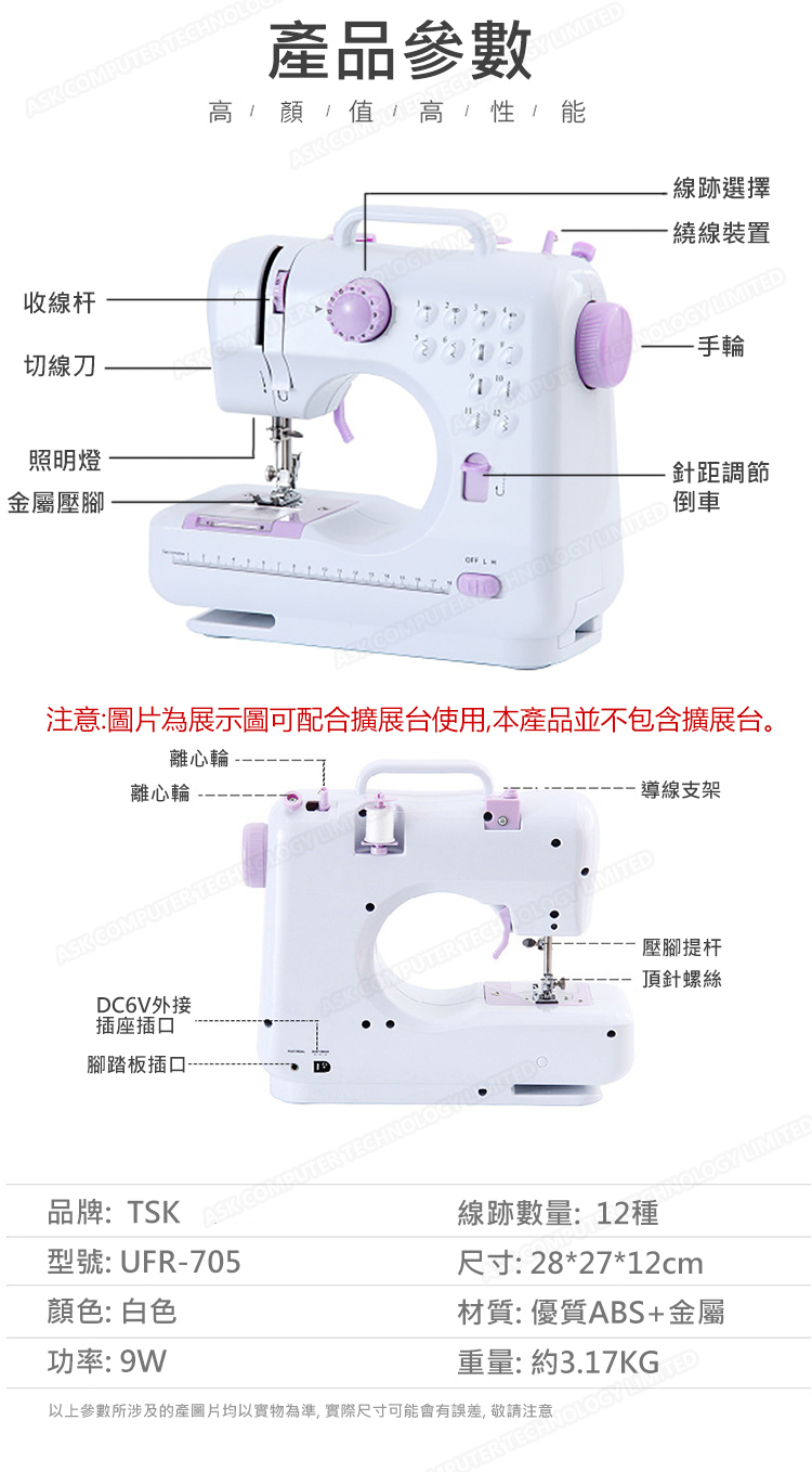 日本TSK 家用多功能衣車便攜式縫紉機 (P3000)