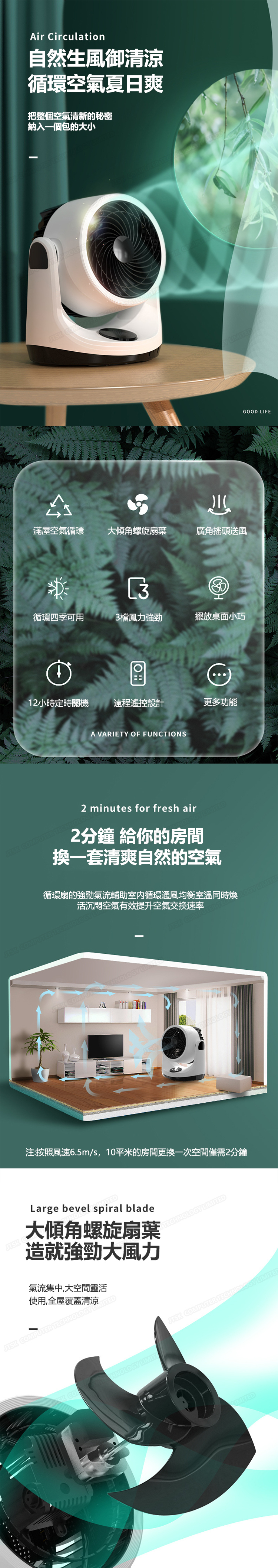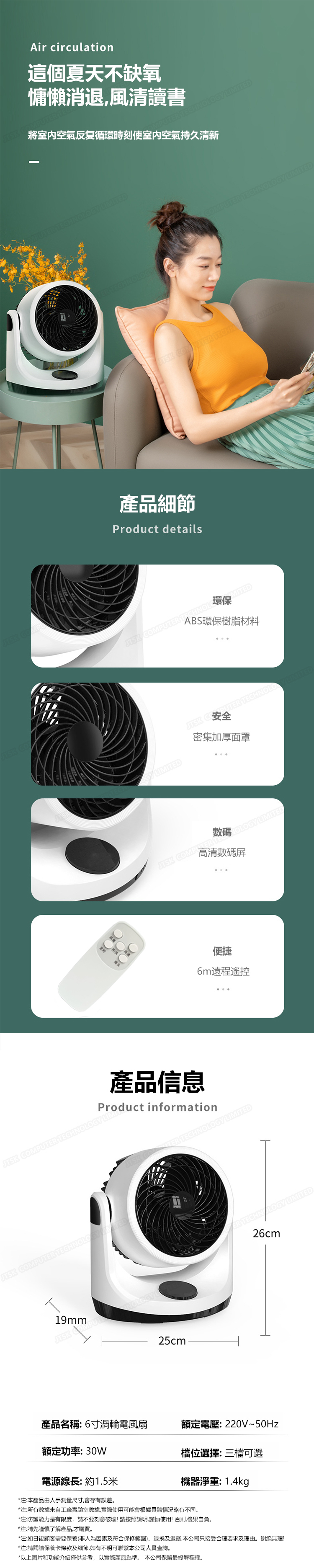 日本TSK 智能遙控靜音6寸渦輪空氣循環對流台式搖頭電風扇