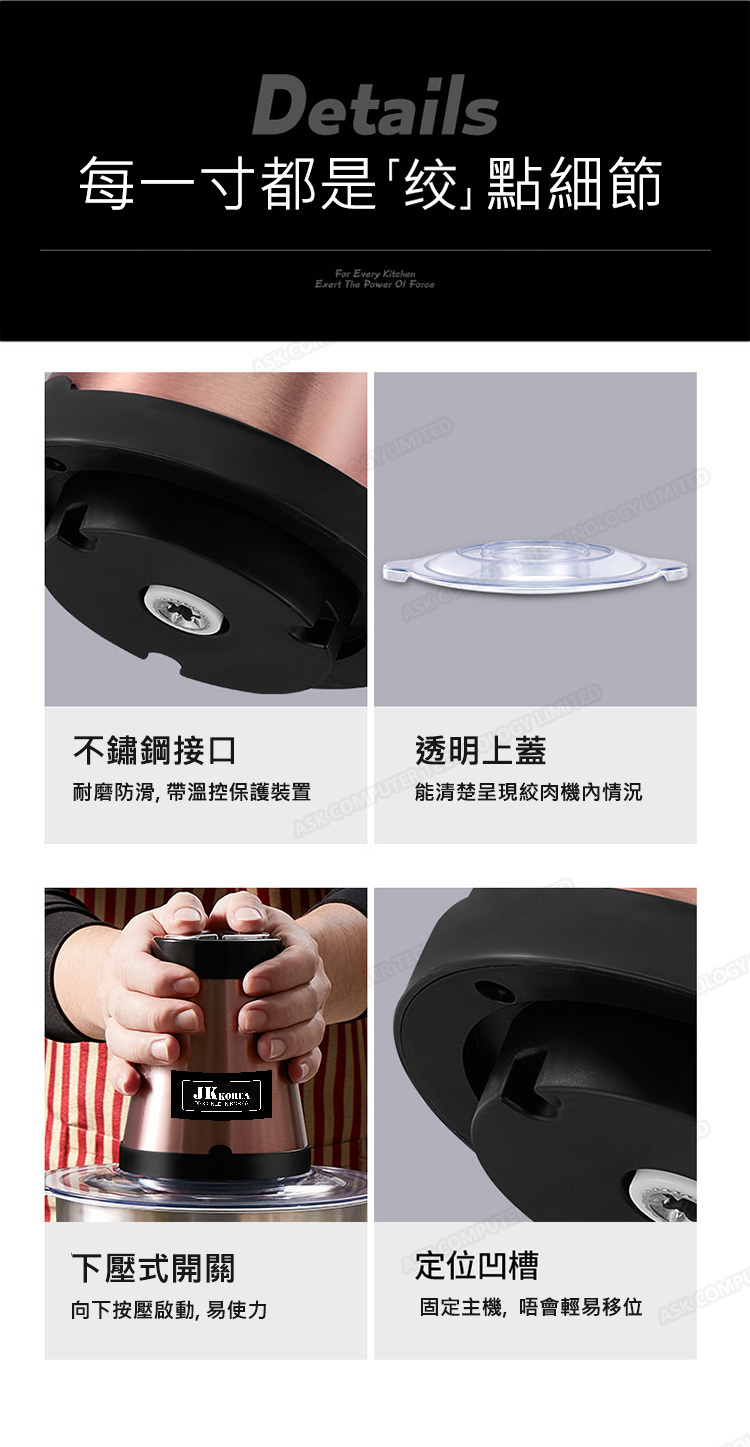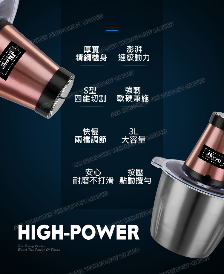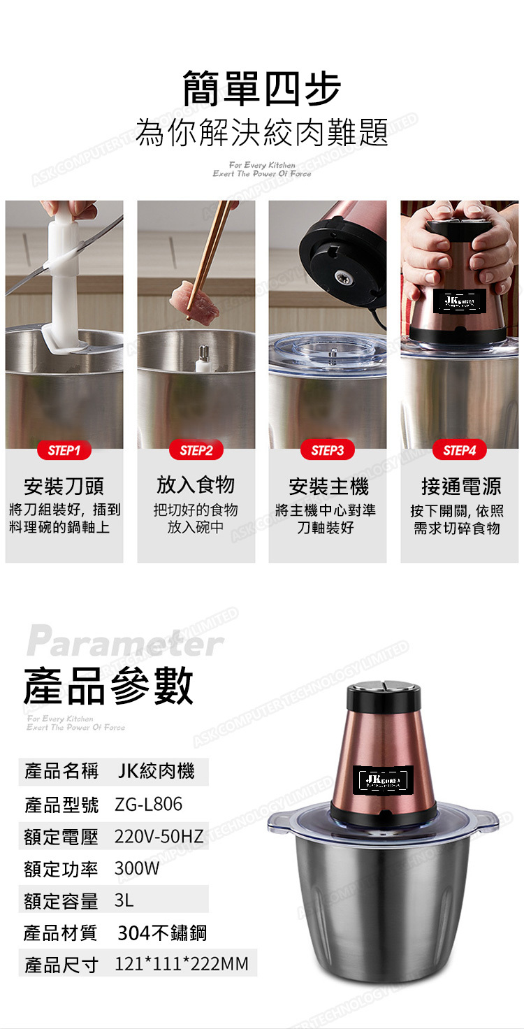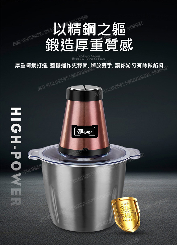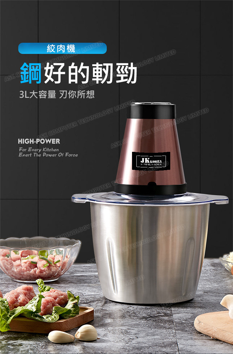 韓國JK 大容量3L絞肉機家用不銹鋼電動多功能打餡攪拌機 (J0448)
