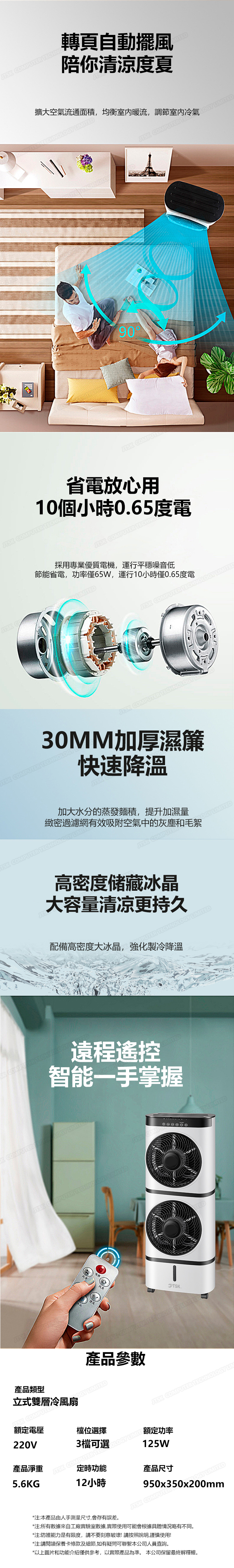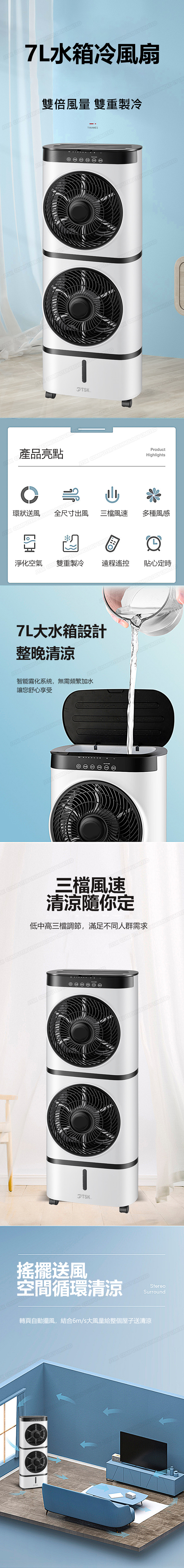 日本TSK 移動式製冷雙層款冷氣扇 7L水箱冷風扇