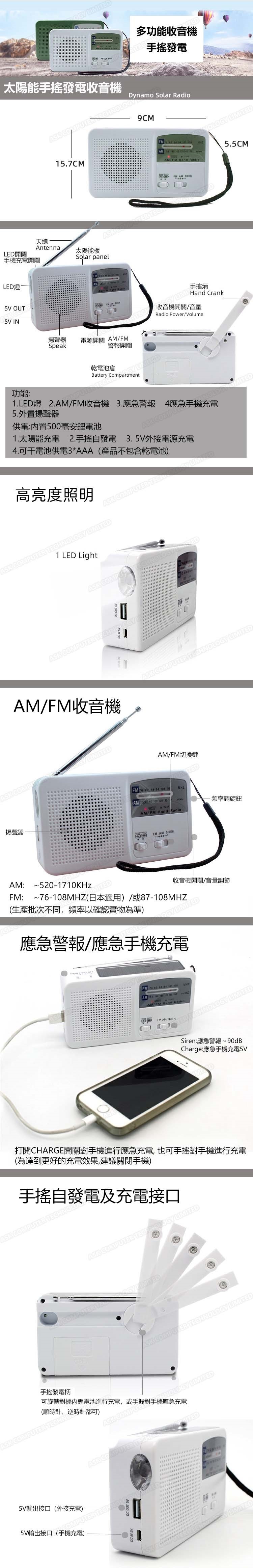 日本TSK 多功能便攜式太陽能電筒手搖發電照明收音機-绿色