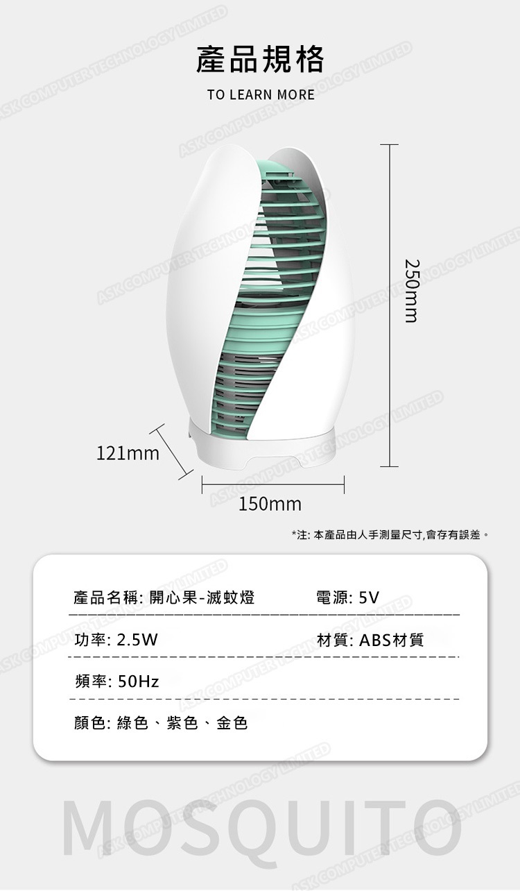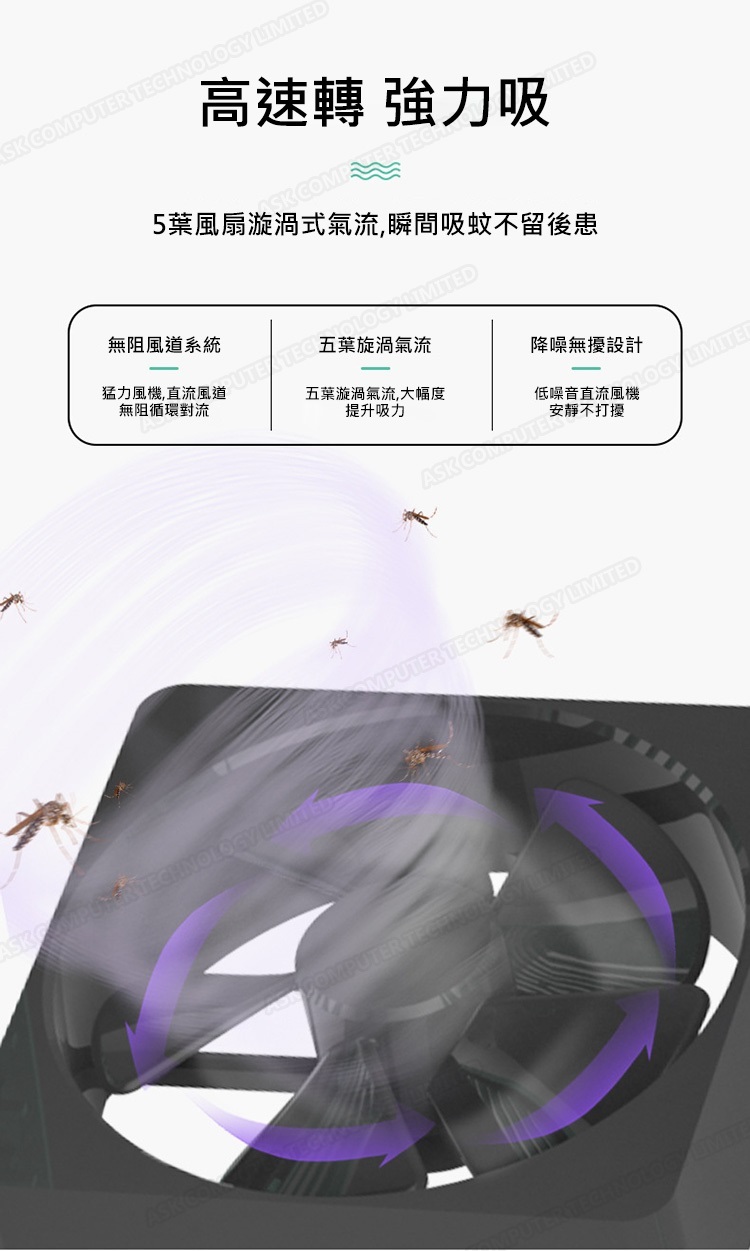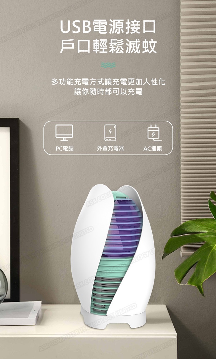 日本TSK 開心果款USB供電五葉渦輪風扇強力吸入式滅蚊器