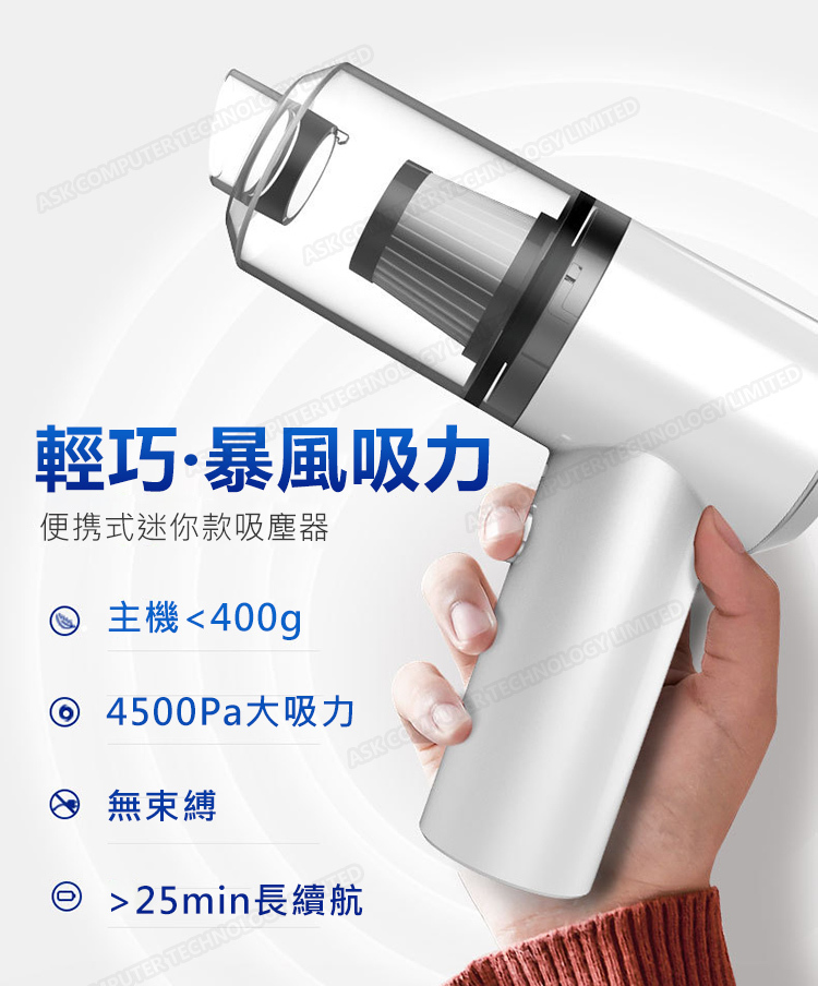 日本TSK 便攜式LED燈照明乾濕家車兩用無線手持式強力吸塵機