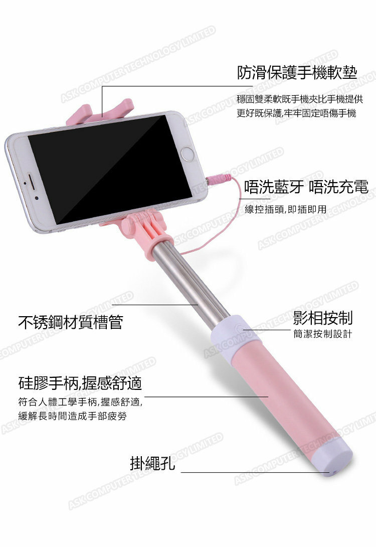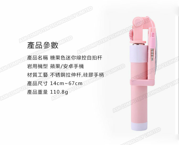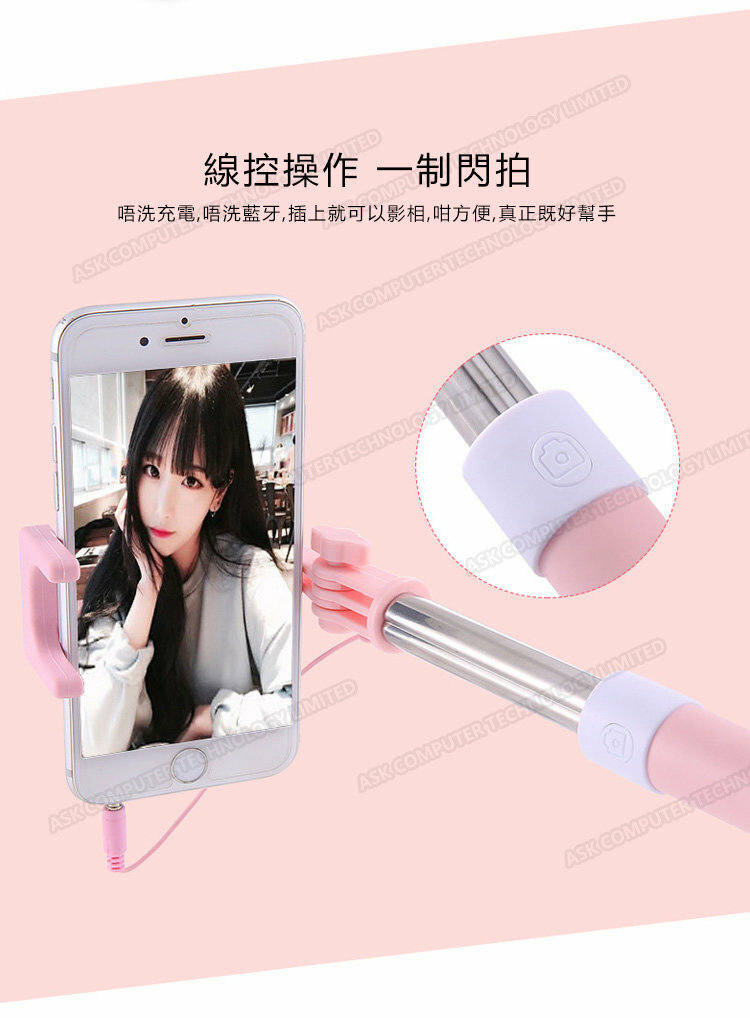 日本TSK Q5 3.5mm線控自拍杆 (顏色隨機)P2326