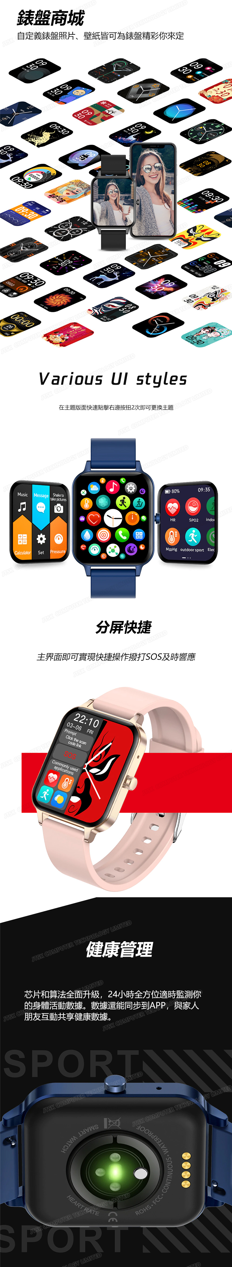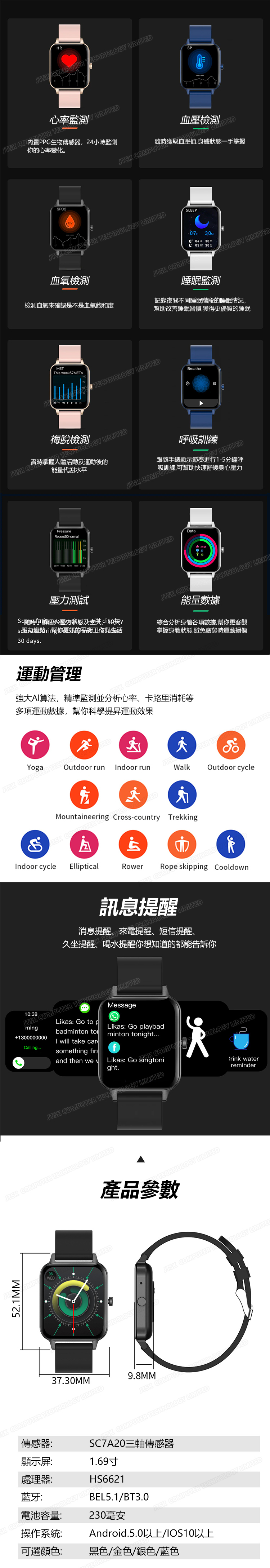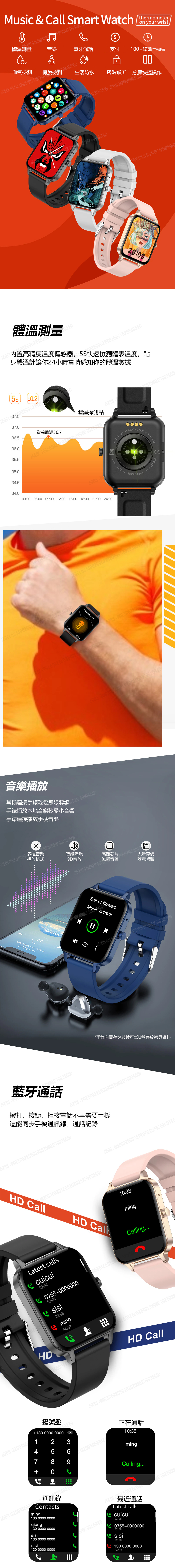 日本TSK 智能全屏觸控運動實時體溫心率藍牙通話手錶 血氧儀音樂信息推送智能手環