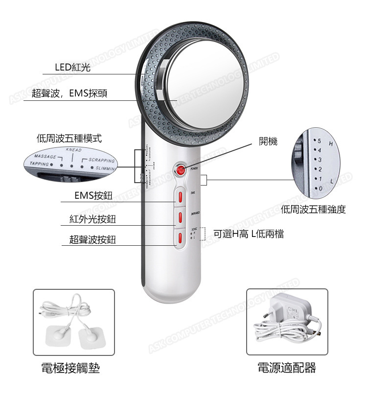 日本TSK 三合一按摩器LED美容EMS超聲波微電肌膚塑身纖體儀 (P2856)