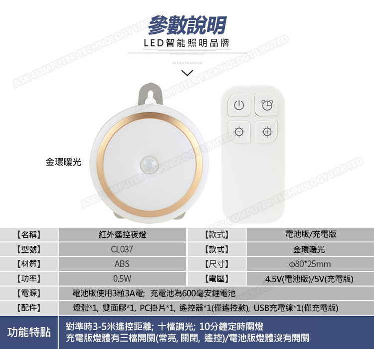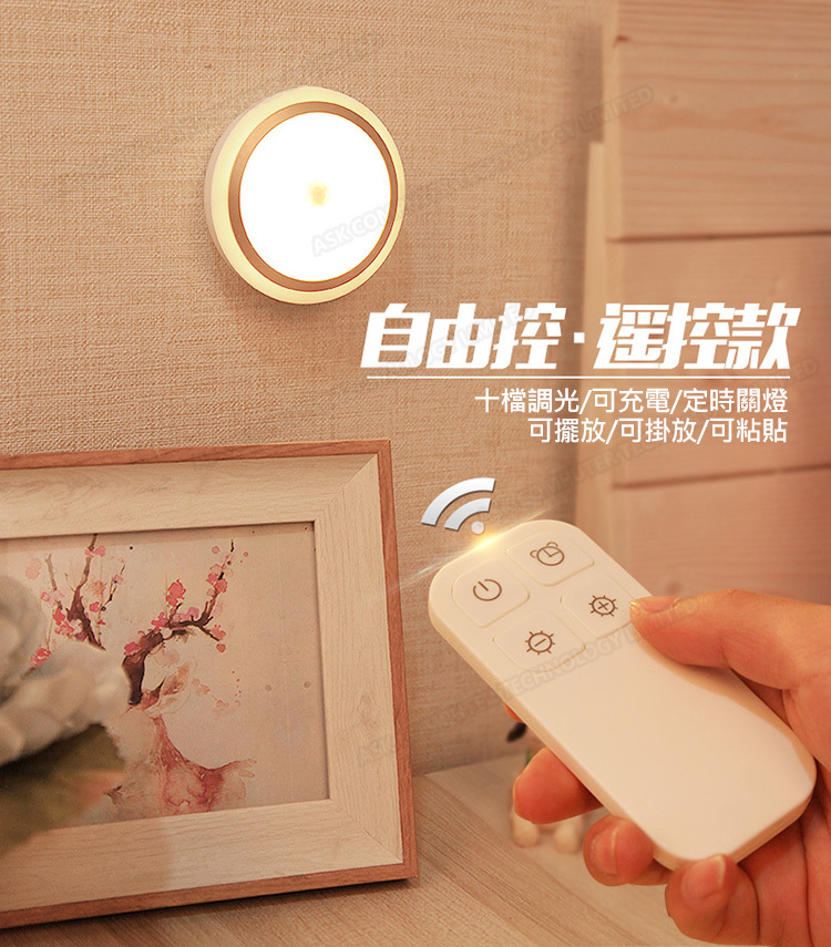 日本TSK 無線LED充電遙控款定時調光護眼小夜燈