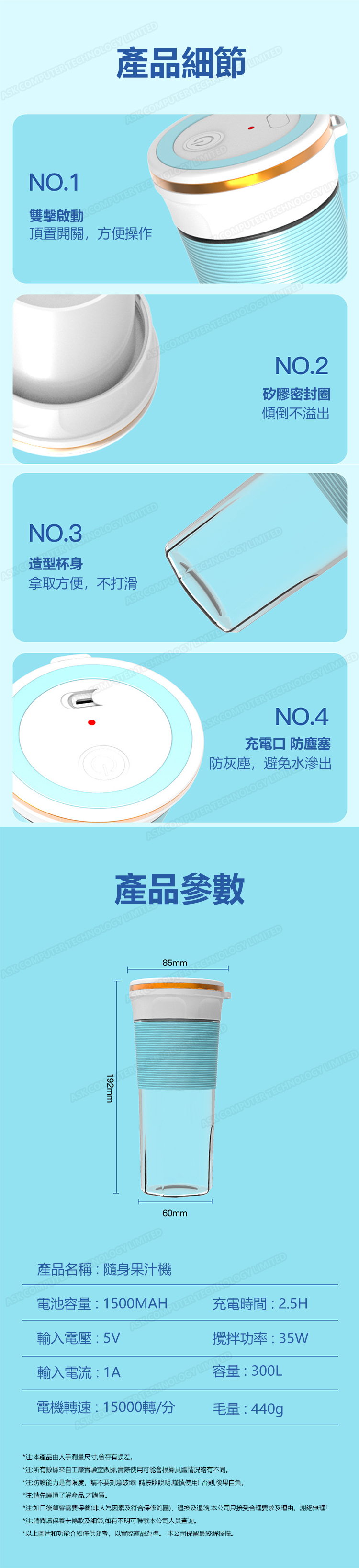 日本TSK 無線USB充電隨身果汁料理榨汁機