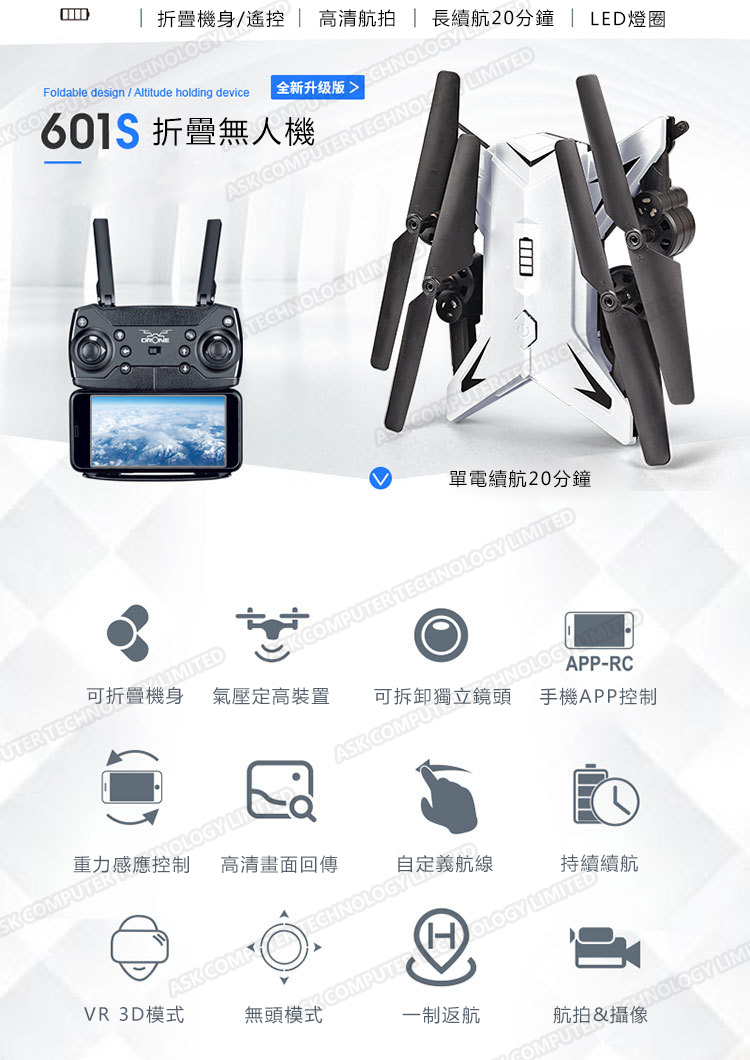 日本TSK KY601S 超長續航1080P高清航拍無人機