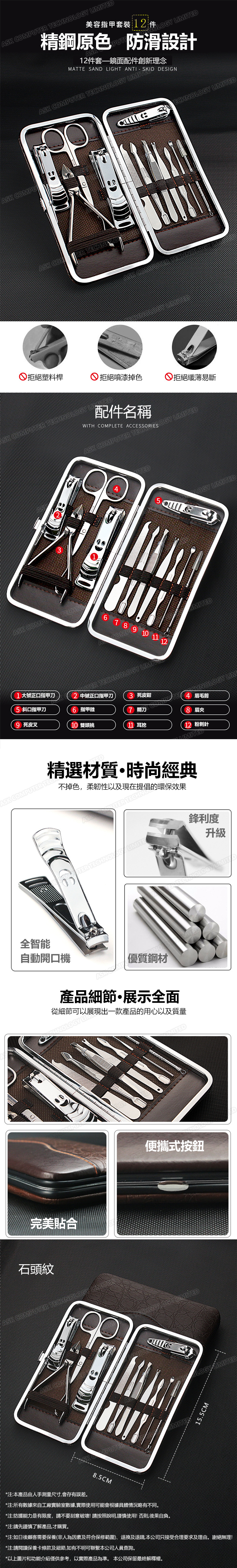 韓國JK 12件套修甲美容美甲工具套裝指甲剪刀指甲鉗修腳甲工具套裝 J0833