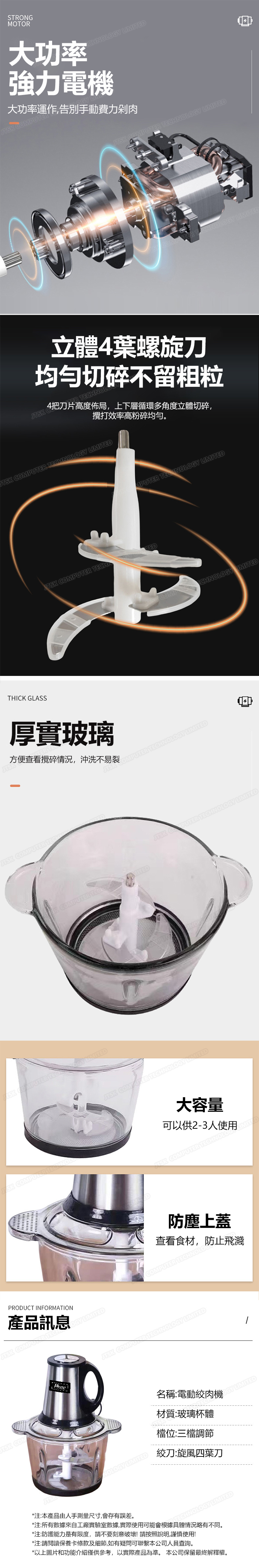 韓國JK 2L玻璃絞肉機廚房碎菜器電動料理機大功率絞餡機