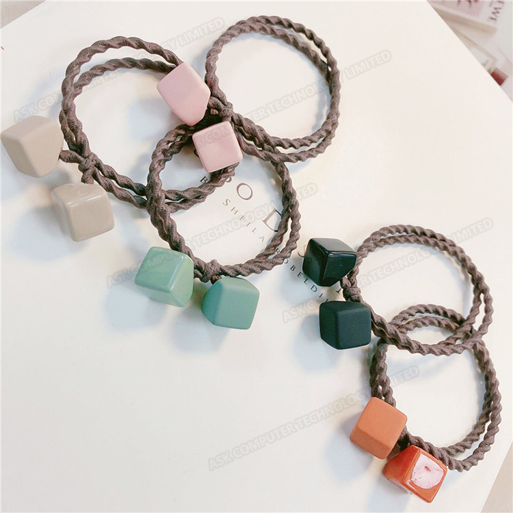 韓國JK 亞克力糖果色幾何高彈力頭繩5件裝