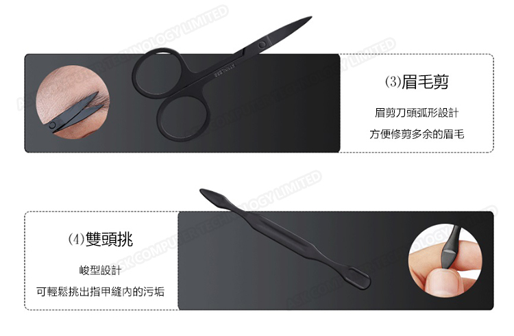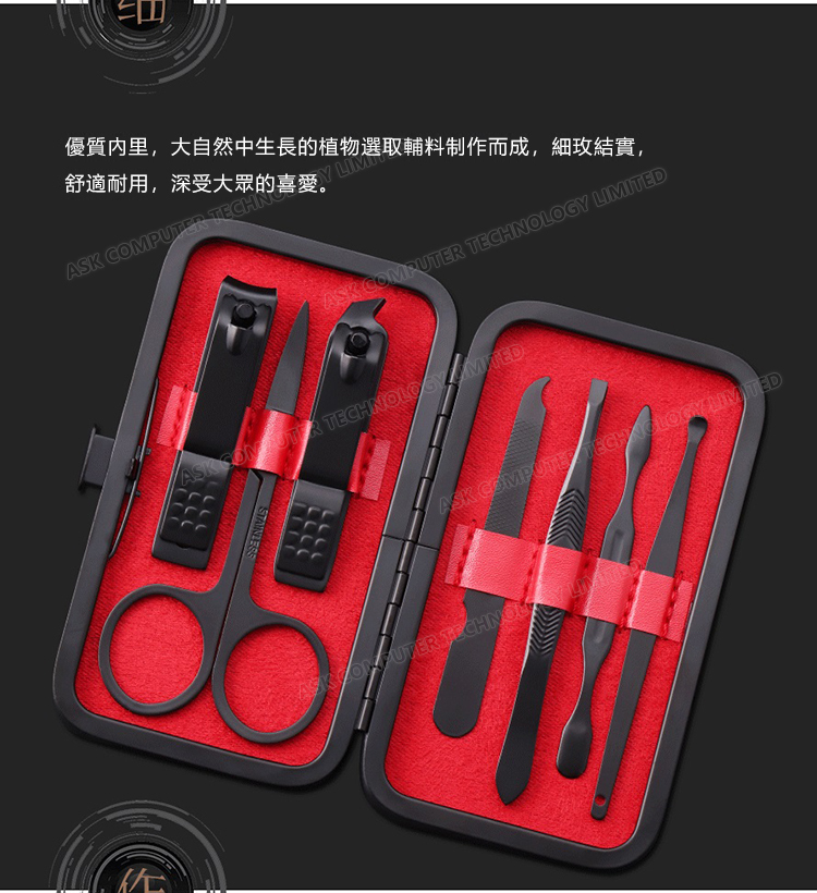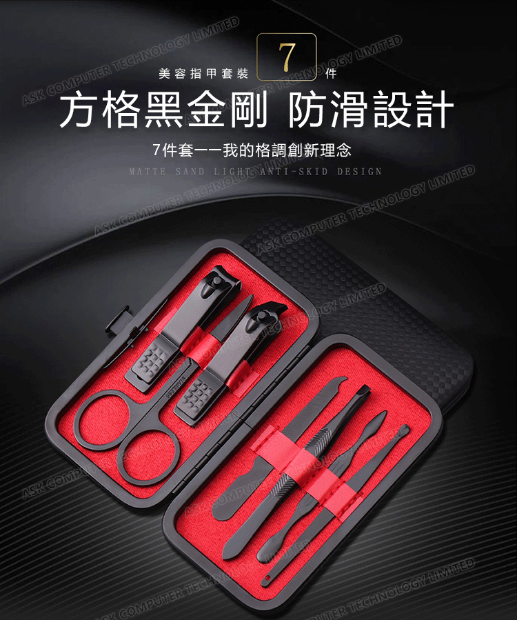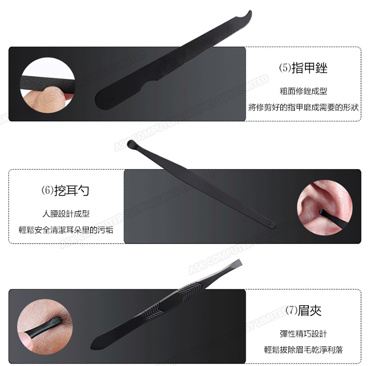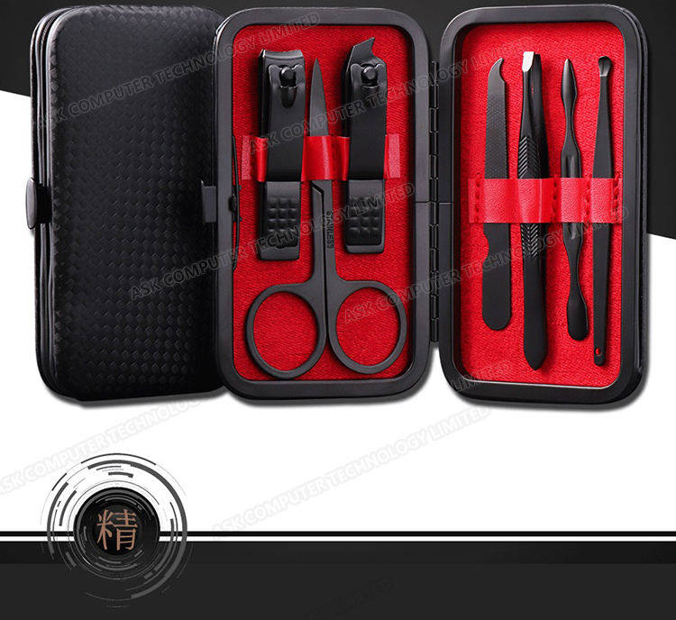 韓國JK 黑色7件指甲刀指甲剪指甲鉗套裝美容美甲工具修甲套裝 (J0144)