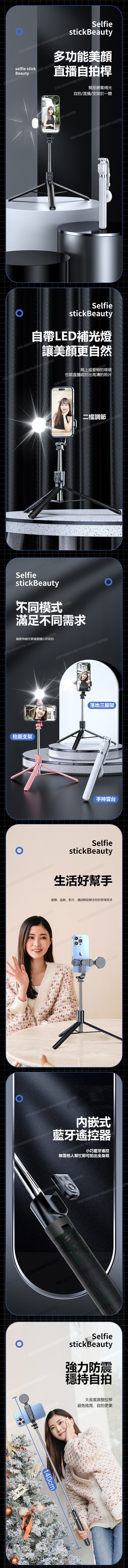 JK KOREA 藍牙便攜充電款補光燈一體三腳架手機自拍杆 直播自拍神器支架