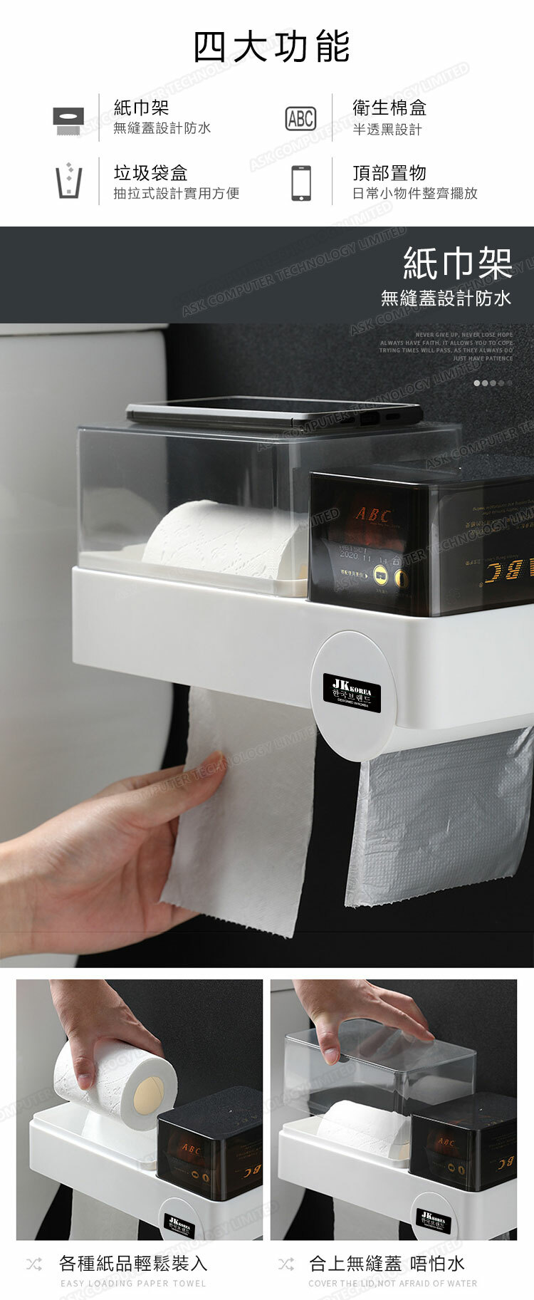 韓國JK 創意家用防水紙巾盒廁所免打孔捲紙筒抽紙置物架 (J0086)