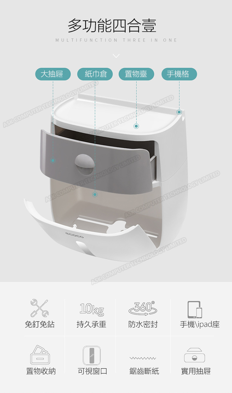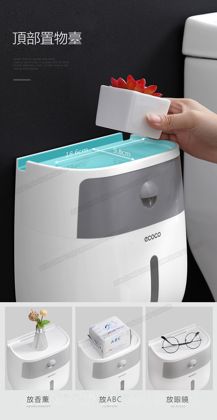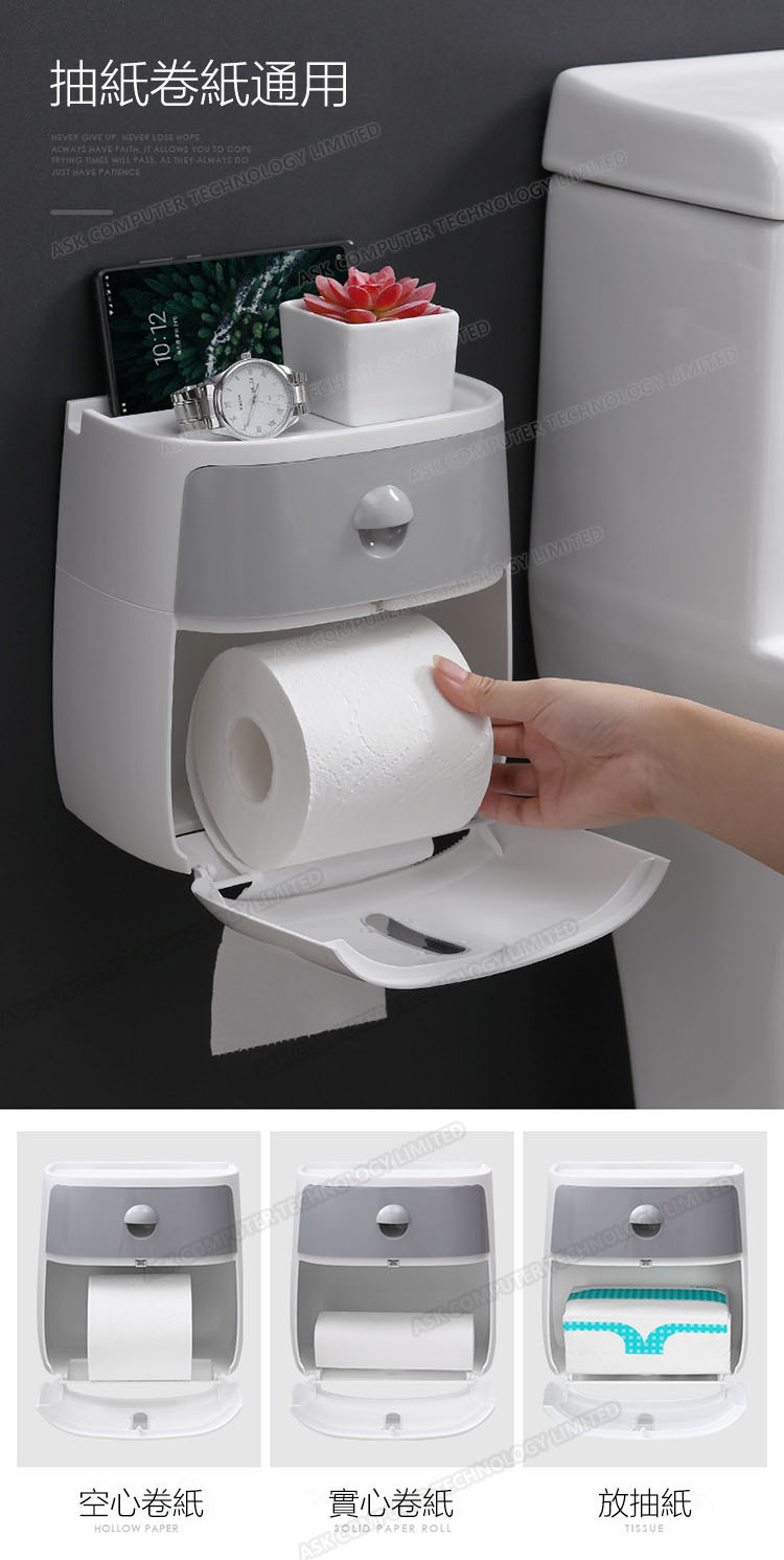 韓國JK ECOCO 雙層紙巾盒置物架洗手間間廁所紙盒家用免打孔創意防水 (J0089)