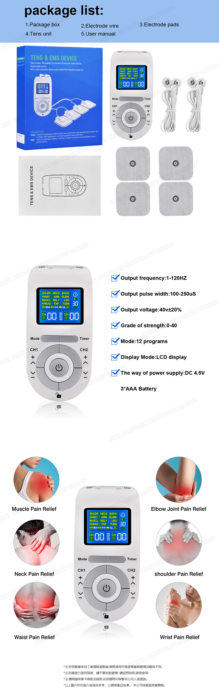 韓國JK EMS物理治療儀 12種模式數位經絡按摩器 家用脈衝按摩器 (J0976)