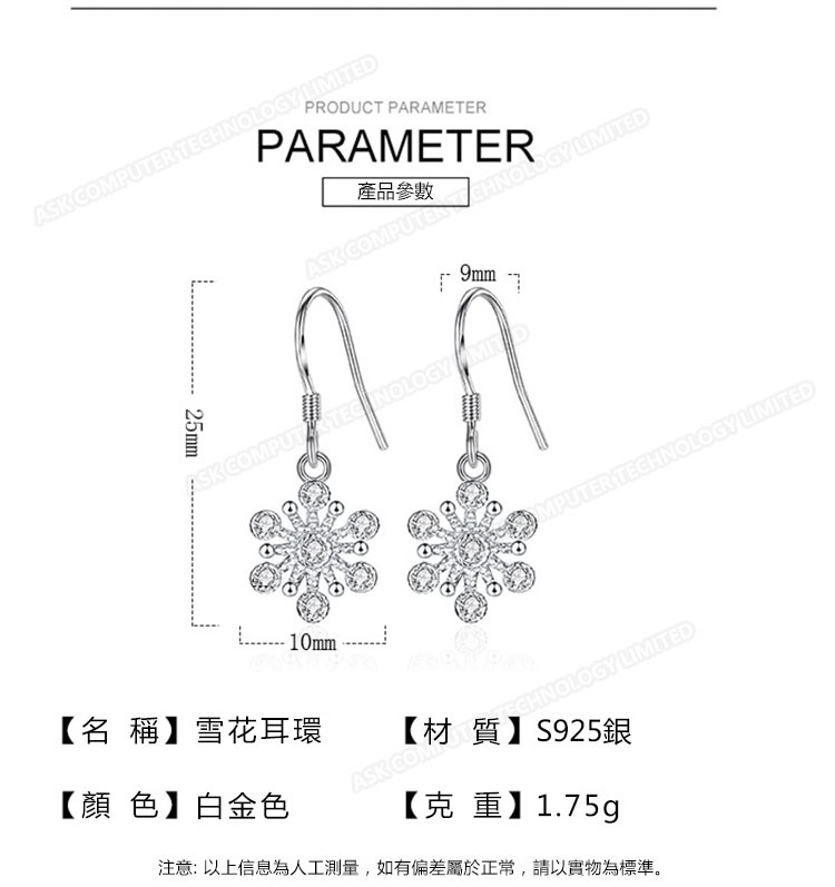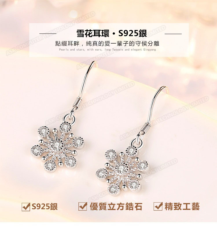韓國JK 時尚鑲鑽雪花耳墜 J0266
