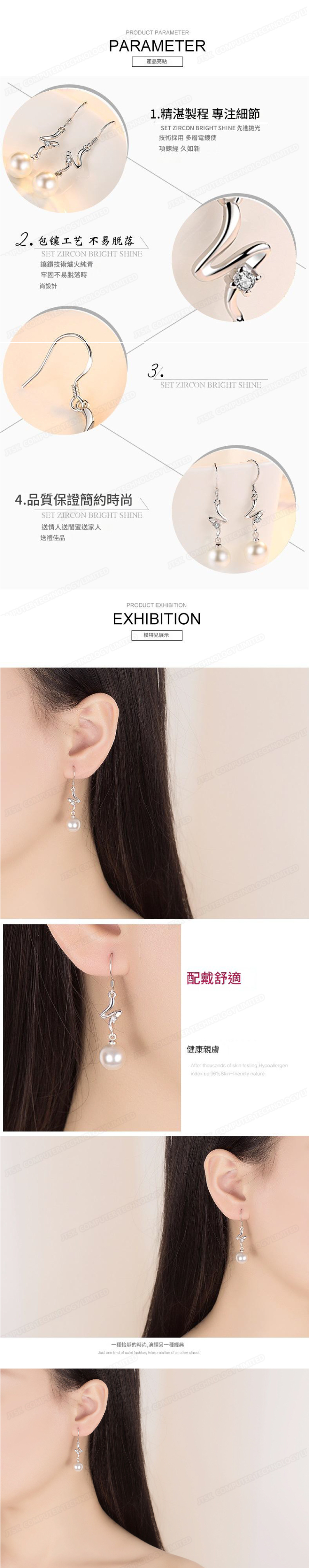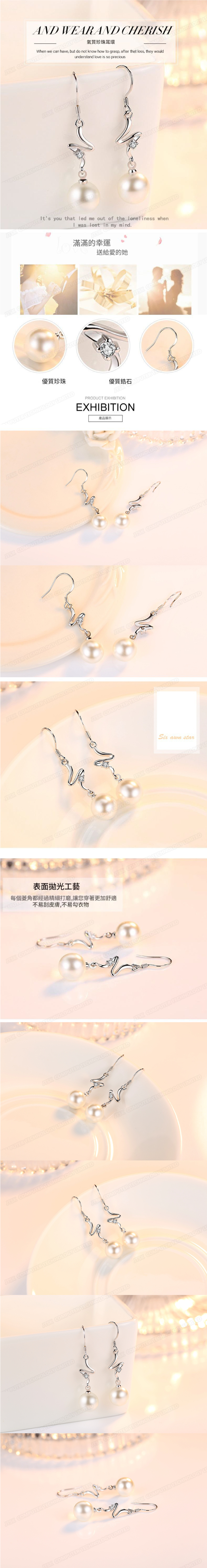 時尚鍍銀甜美花朵水滴珍珠耳墜 耳環