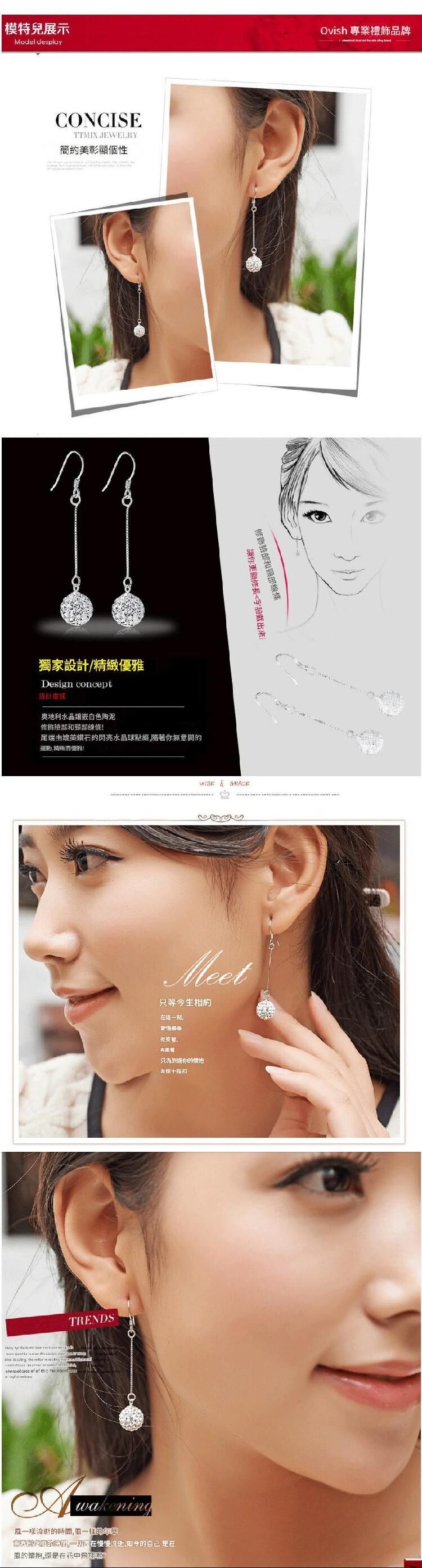 時尚流蘇長款鑲滿水晶鑽球耳墜 耳環