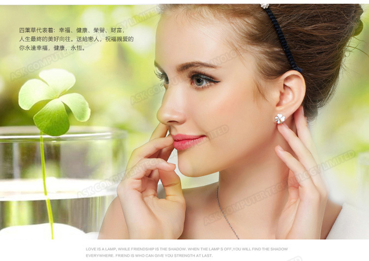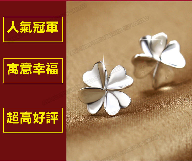 韓國JK 時尚葉草鍍銀耳釘 J0203