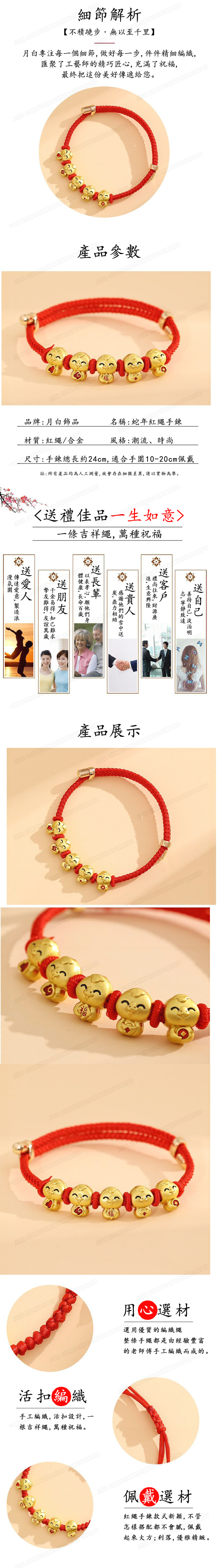 韓國JK 五福蛇【吉祥紅繩】手鏈手工編織兒童情侶五福蛇生肖蛇手繩新年小禮物男女手繩 J0997