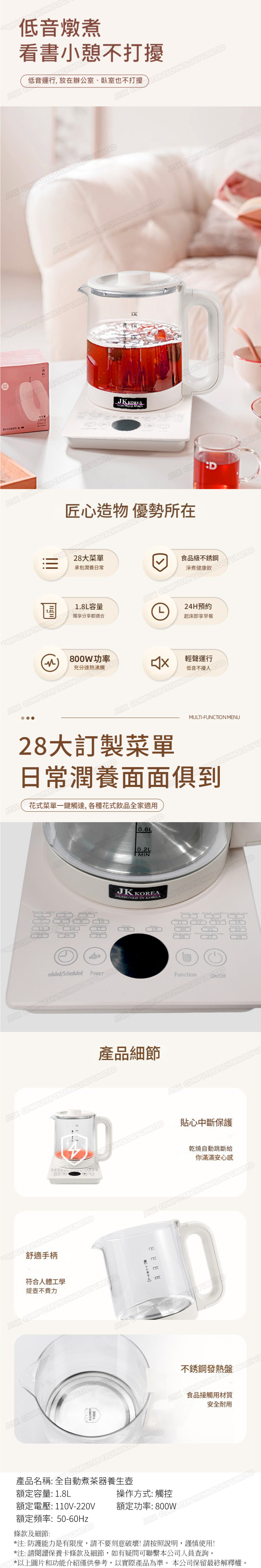韓國JK 全自動煮茶器養生壺 J0691 (英規(BS1363)三腳插頭)