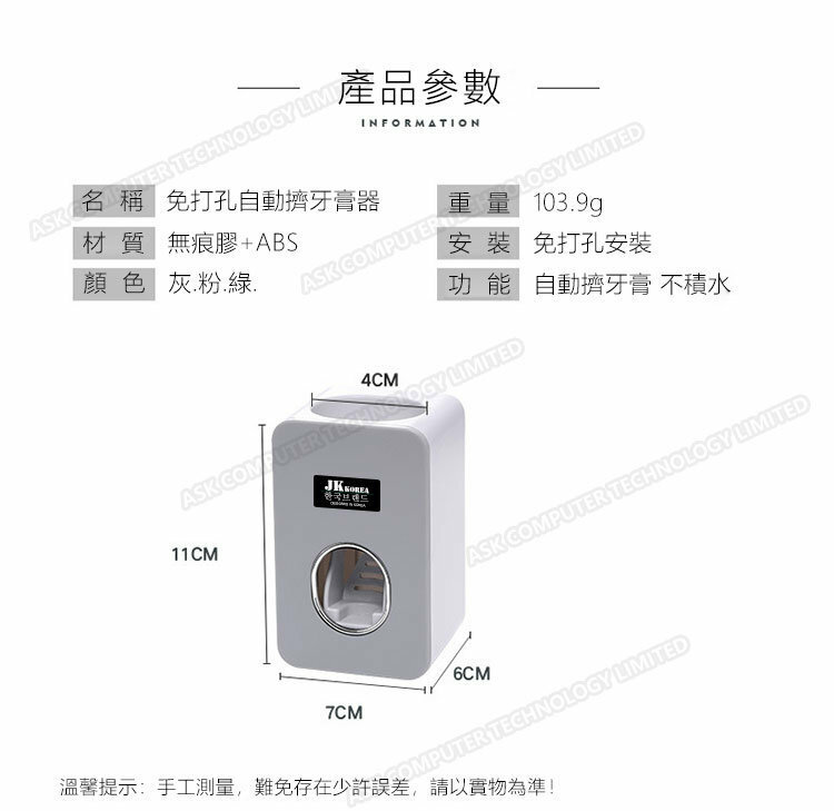 韓國JK 全自動擠牙膏器套裝壁掛免打孔牙膏牙刷置物架牙膏架懶人擠壓神器 J0091