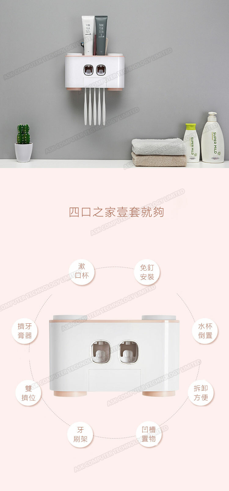 韓國JK 幸福之家洗漱套装 新款四口之家自动挤牙膏器 (J0090)