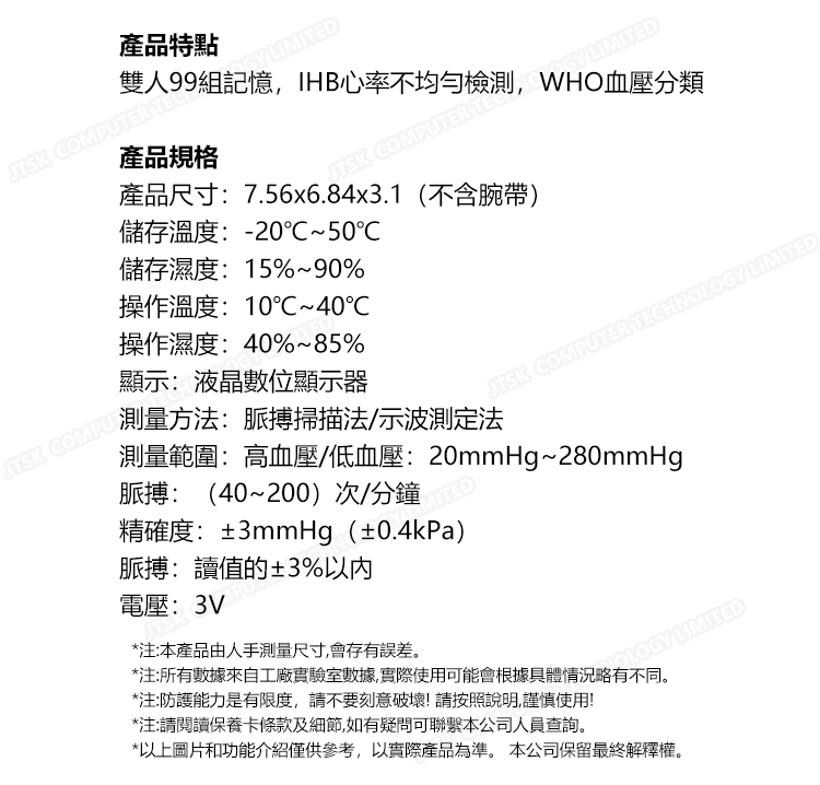 韓國JK 家用智能語音播報血壓計手腕式血壓計 (J0971)