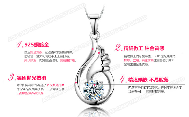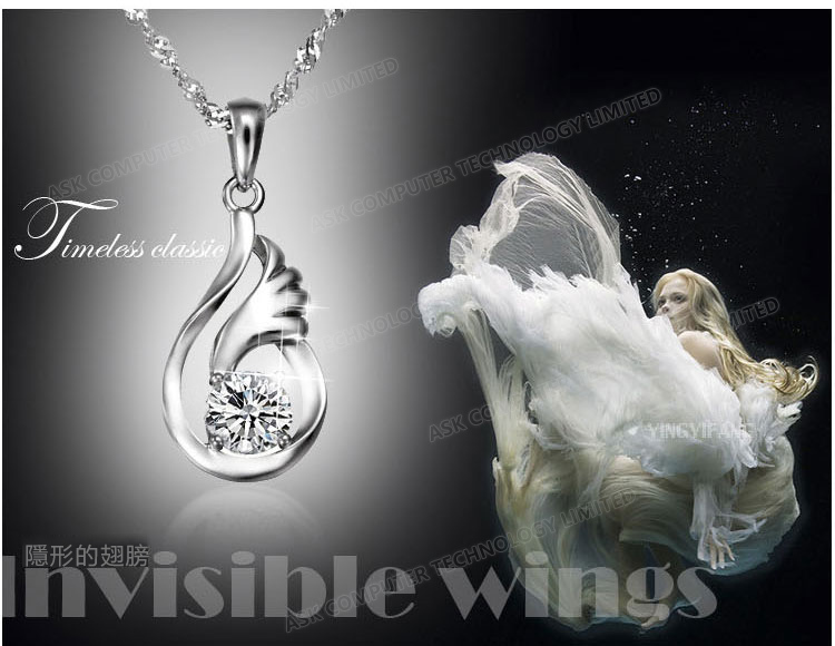 韓國JK 隱形的翅膀項鍊吊墜鍍銀項鍊 J0199