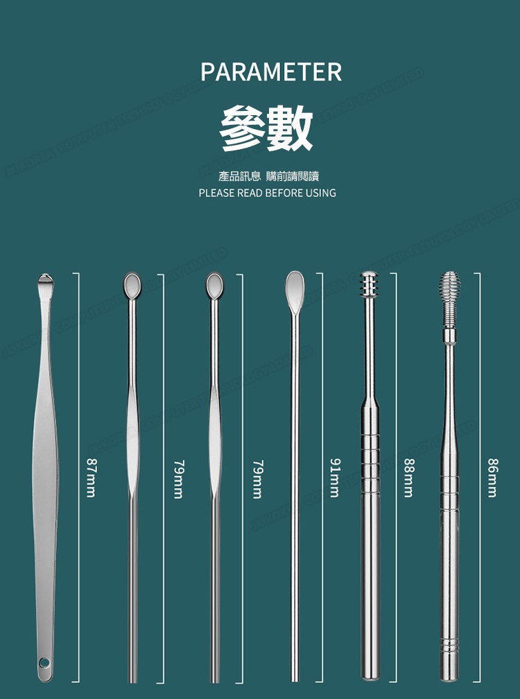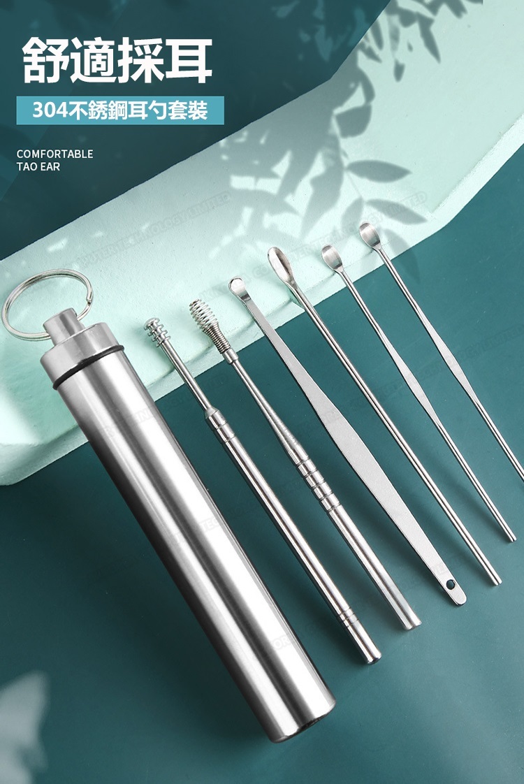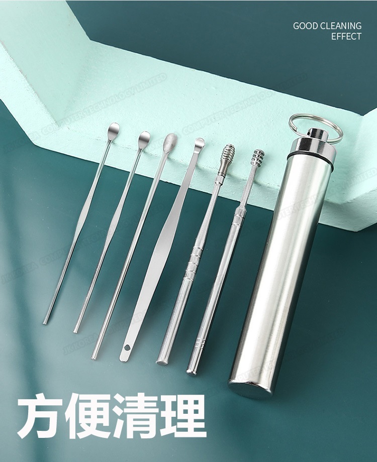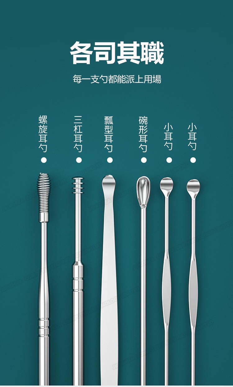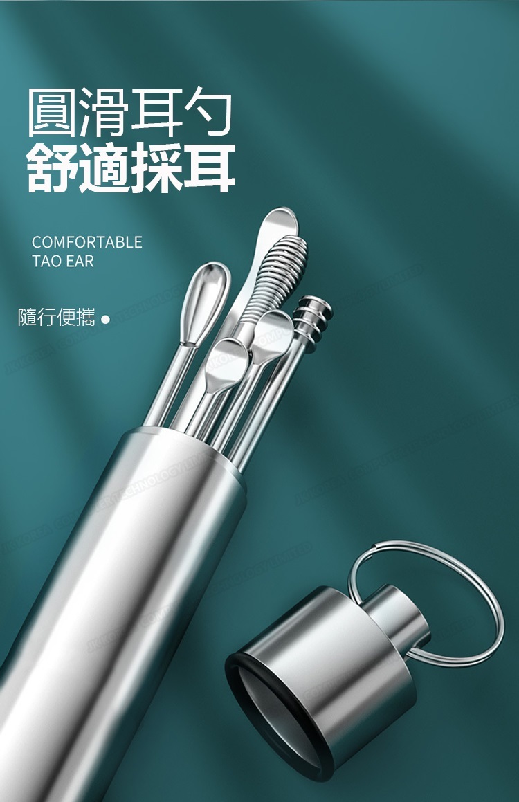 韓國JK 304便攜采耳6件套 不銹鋼挖耳勺套裝螺旋彈簧耳挖采耳工具 J0653