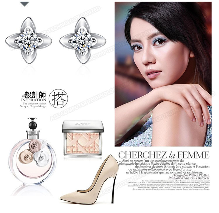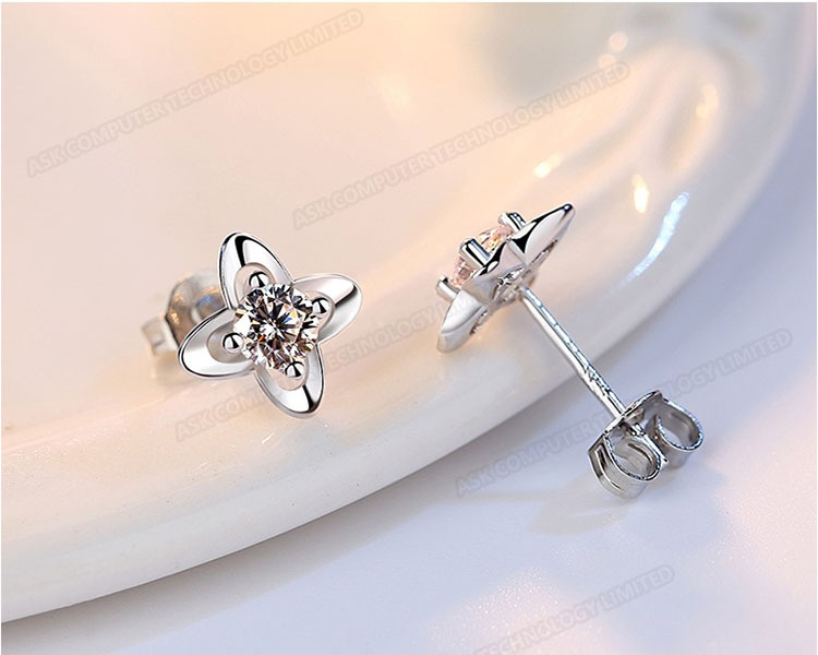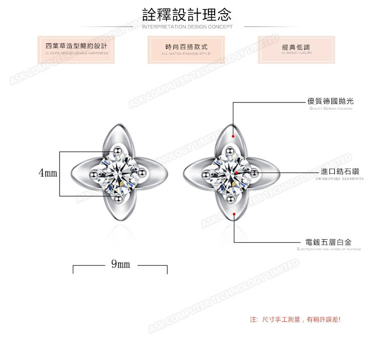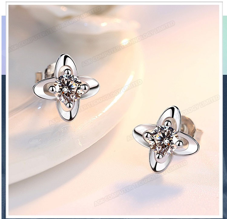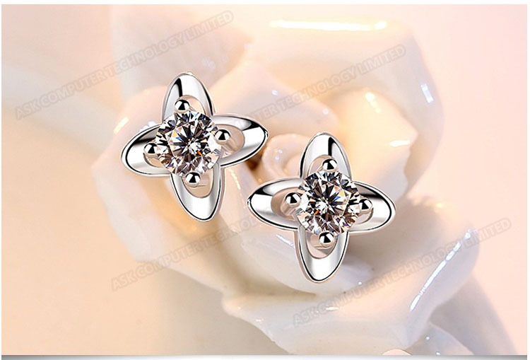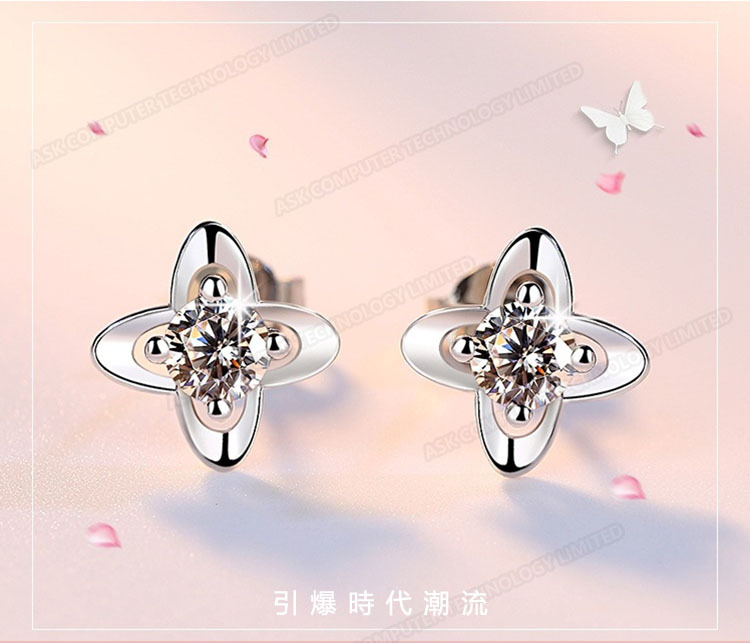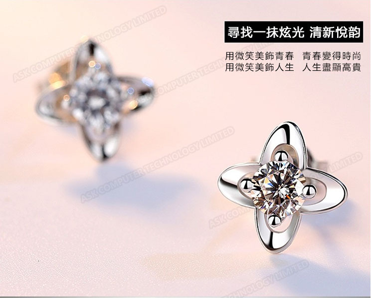 韓國JK 幸運四葉草鑲鑽鋯石耳釘 J0265