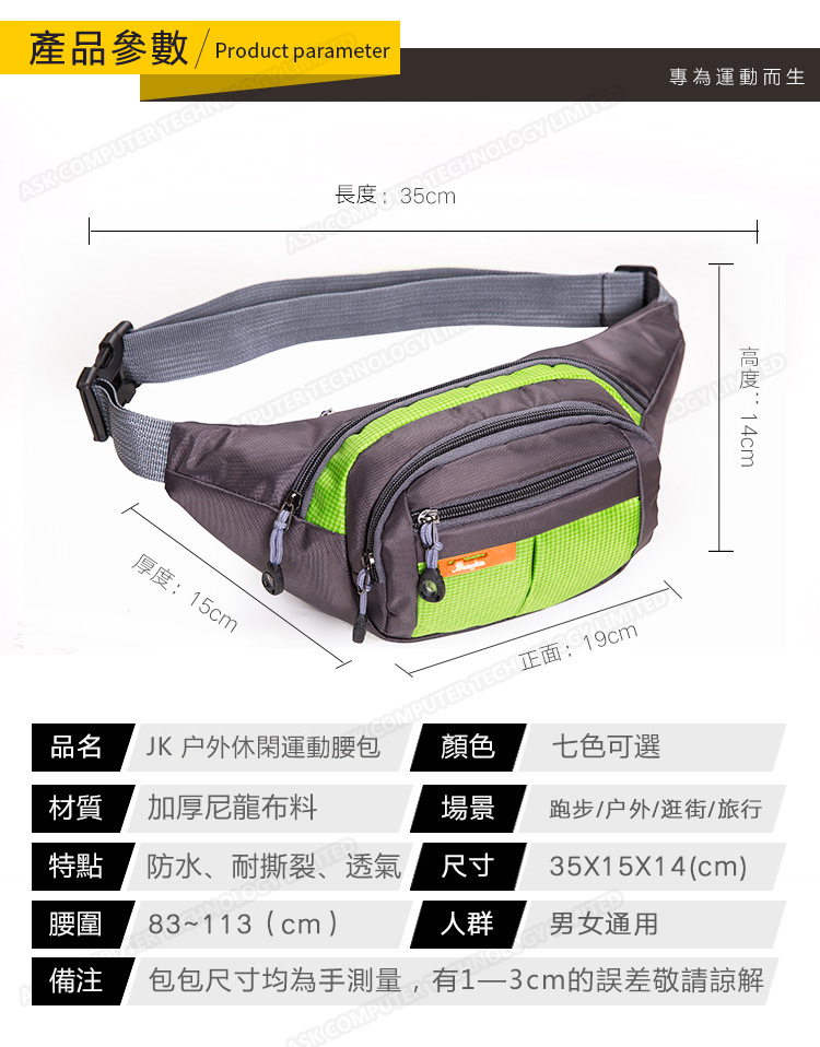 韓國JK 男士女士戶外運動腰包 (J0403)