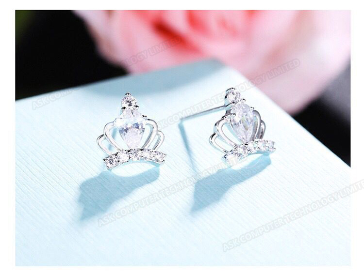 韓國JK 微鑲鑽公主皇冠銀針耳釘 J0451