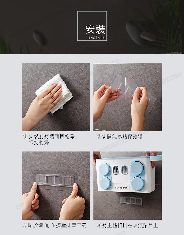 韓國JK 多功能免打孔衛生間掛壁式牙刷置物架 (J0327)