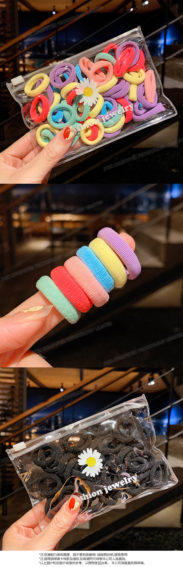 韓國JK 新款50條收納袋裝兒童紮頭發頭繩女彩色簡約皮筋髮圈 J0885