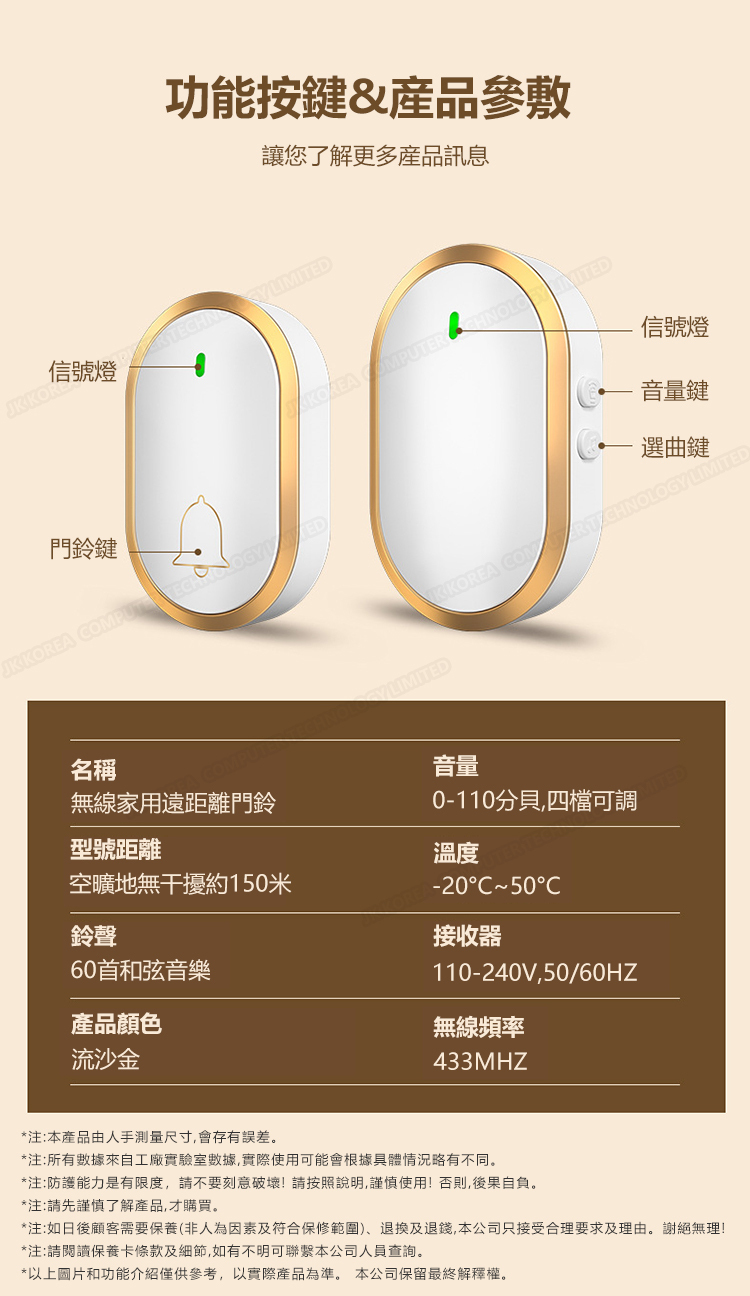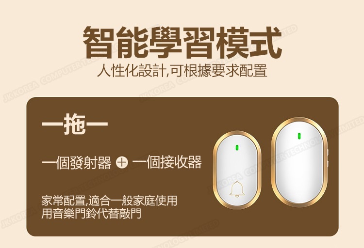 韓國JK 新款門鈴無線家用智能遠距離電子遙控門鈴一拖一老人叮咚呼叫器 (J0678)