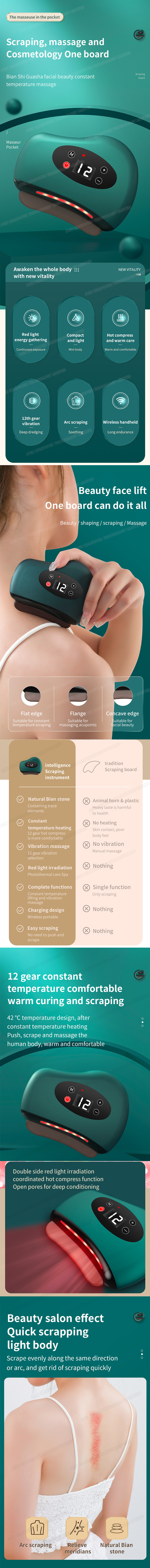 韓國JK 新款電動紅砭石刮痧儀家用多功能按摩儀振動加熱光療刮痧美容儀12檔震動加熱 (J0865)