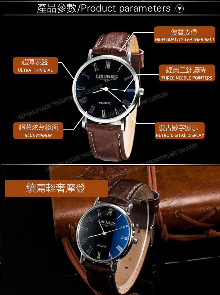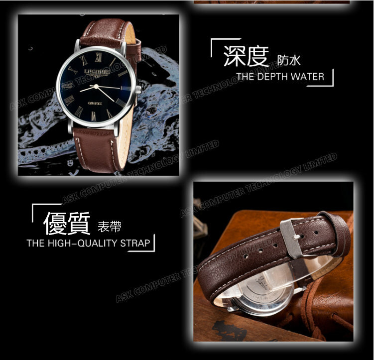 韓國JK 新款時尚男士商務皮帶手錶 J0124