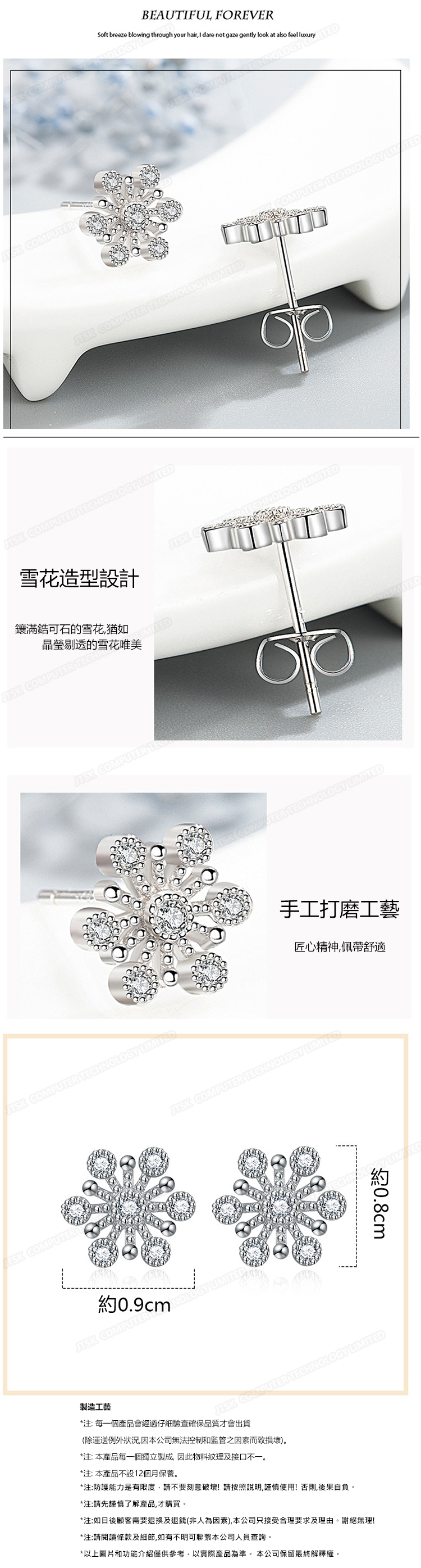 韓國JK 新款時尚風花雪月物語雪花鍍銀耳飾 J0857
