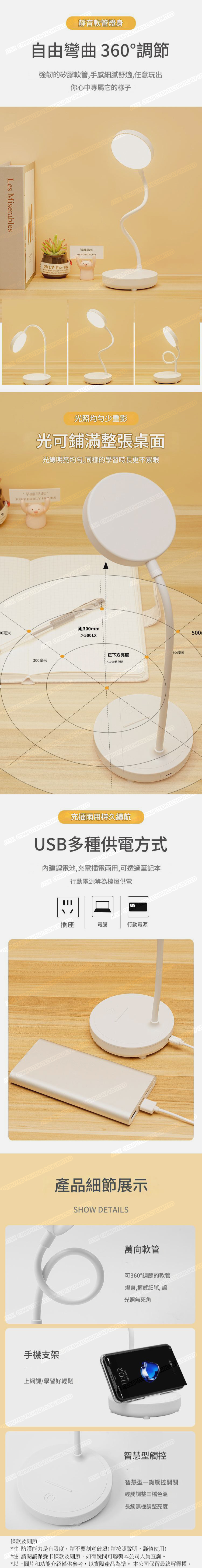 韓國JK 新款LED護眼充電式手機支架學生兒童學習臥室宿舍應急燈檯燈