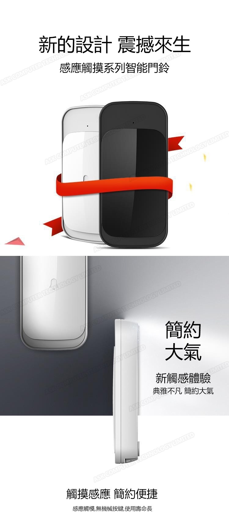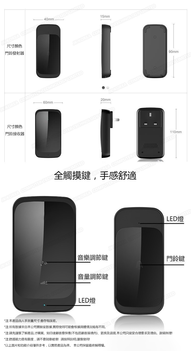 韓國JK 新款多功能一拖一家用無線門鈴交流智能音樂遠距離無線遙控觸摸感應門鈴 (J0692)