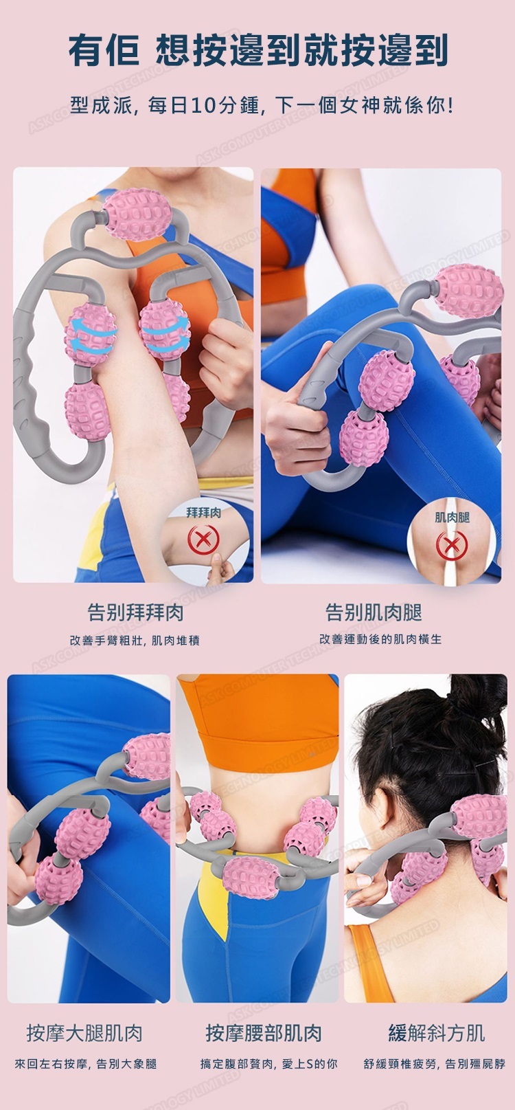 韓國JK 新款環形按摩滾輪瘦腿神器消除型肌肉放鬆小腿泡沫軸瑜伽夾腿部按摩器 (J0366)