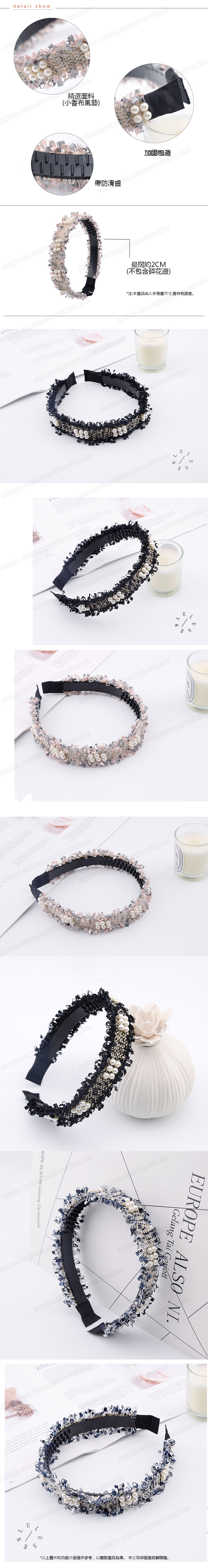 韓國JK 新款小香風毛邊釘珠髮箍簡約氣質細邊珍珠頭箍洗澡盤發壓發頭扣髮飾 J0756